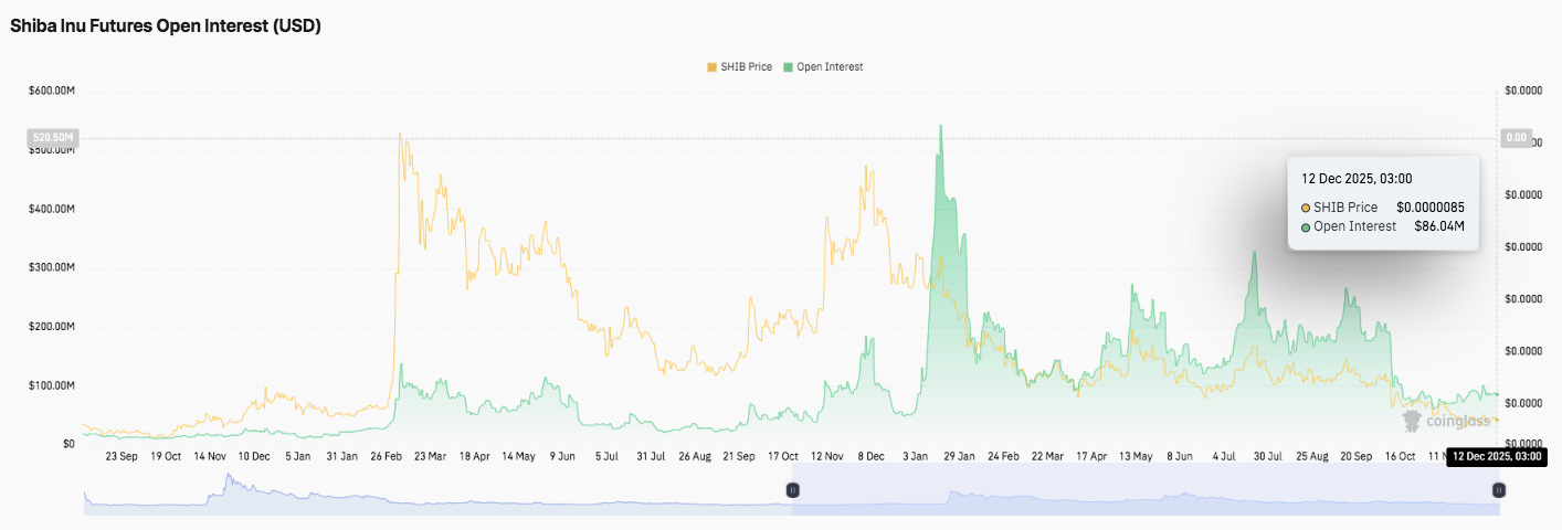 Shiba Inu продолжает торговаться в узком диапазоне на фоне ценового движения, данных по деривативам и развития экосистемы указывают на растущую неопределённость. На 4-часовом графике SHIB показывает консолидацию после корректирующего снижения, начавшегося в начале ноября.