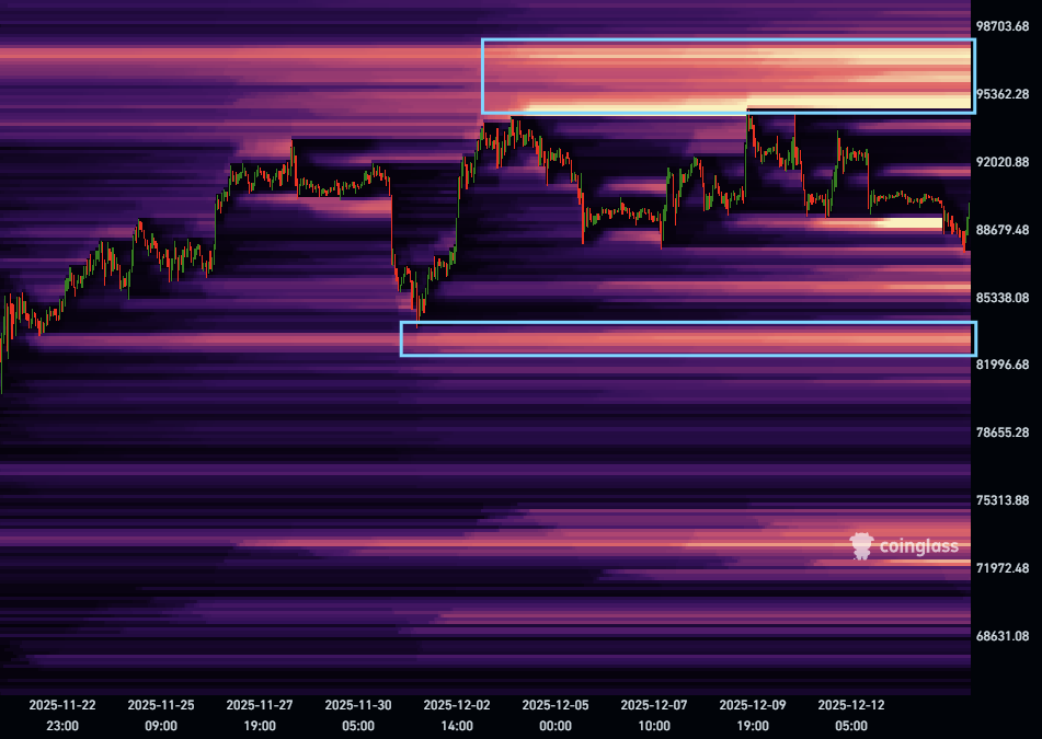 CrypNuevo выделил уровни $80 000 и $99 000 как крайние точки нового диапазона, ожидая движения к одному из концов «в ближайшее время». Аналитик указал на концентрацию ликвидаций в верхней части диапазона около 50-дневной экспоненциальной скользящей средней на уровне $95 500.