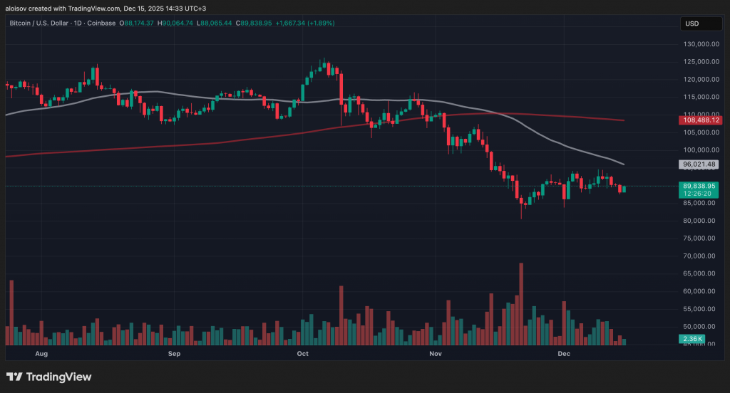 Биткоин застрял в узком диапазоне ниже $90 000, и трейдеры ищут четкие сигналы перед рождественскими каникулами. Текущая неопределенность заставляет участников рынка выжидать, пока не появится ясность относительно дальнейшего направления движения первой криптовалюты.