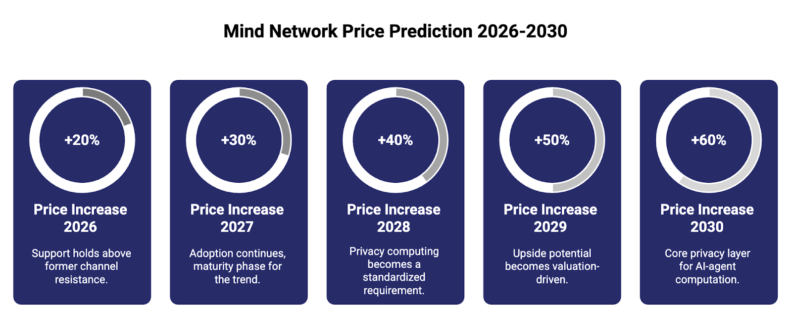 Прогноз на 2030 год представляет собой долгосрочное позиционирование, а не краткосрочные ожидания. Если Mind Network успешно утвердится как ключевой слой конфиденциальности для вычислений агентов ИИ, цена может значительно превышать свою базу 2025 года.