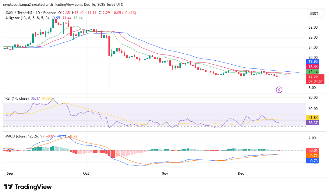 Нижние максимумы и низкие минимумы продолжают определять недавнее поведение цен. Кроме того, индикатор Supertrend остаётся в режиме продажи, усиливая нисходящий уклон.