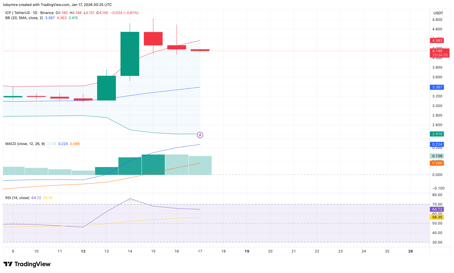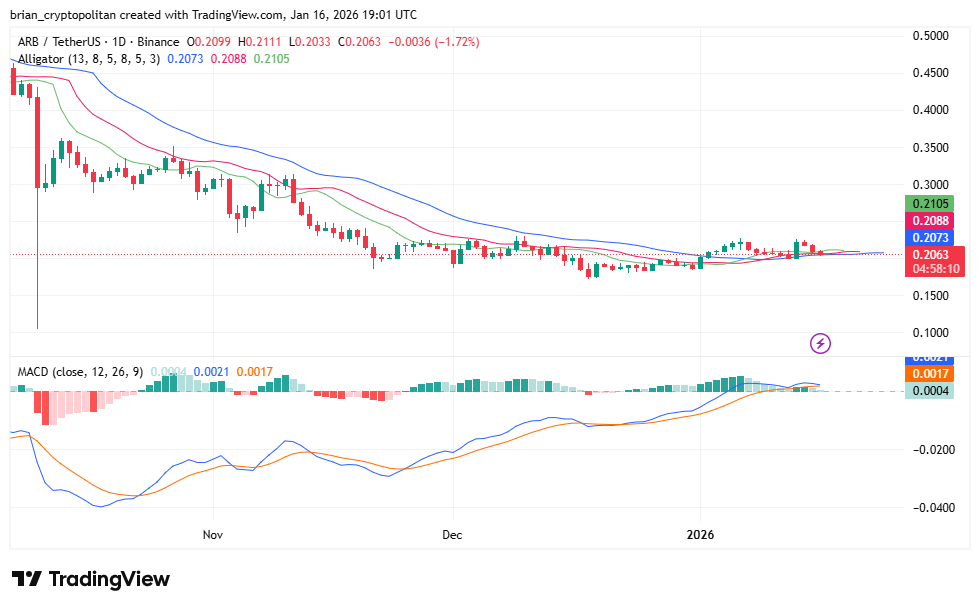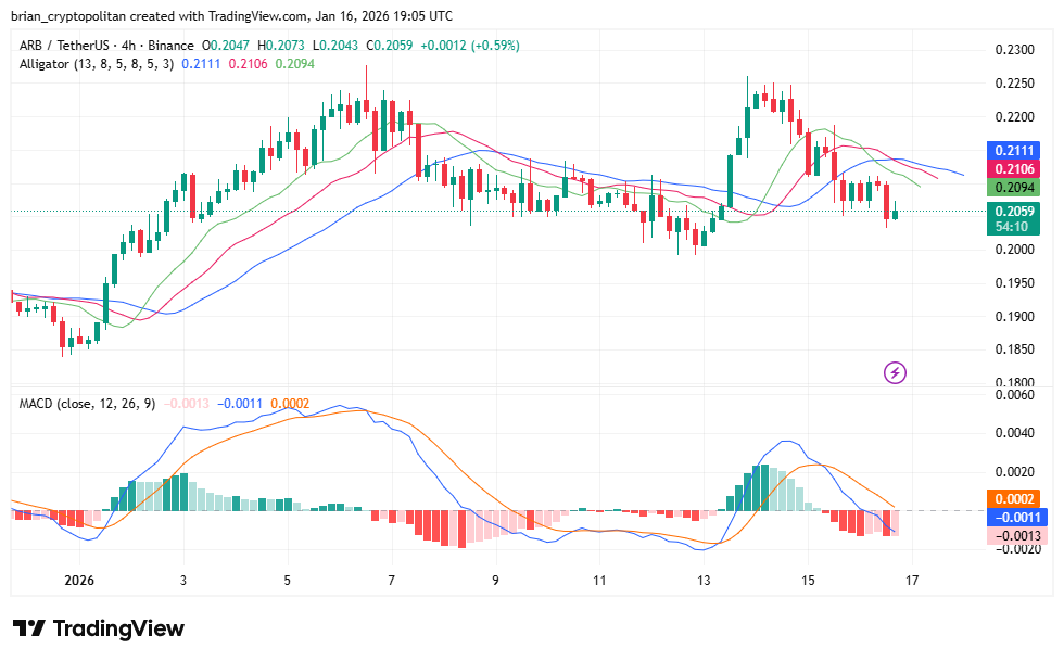 Индикаторы импульса всё ещё показывают стресс. RSI находится около 26, что указывает на условия перепродажи и сильное давление на продажи. Более того, MACD остаётся медвежьим и указывает на продолжение слабости, если импульс не изменится.