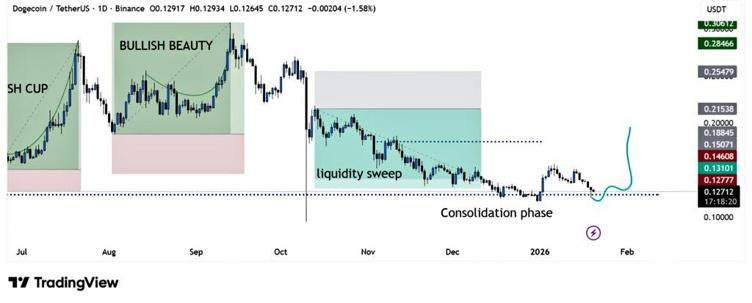 С другой стороны, продавцы продолжают защищать зону $1.93–$1.95, где сопротивление Фибоначчи пересекается с заторами EMA. Кроме того, более сильный регион предложения остаётся в диапазоне от $2,17 до $2,28, что ограничивает попытки восстановления.