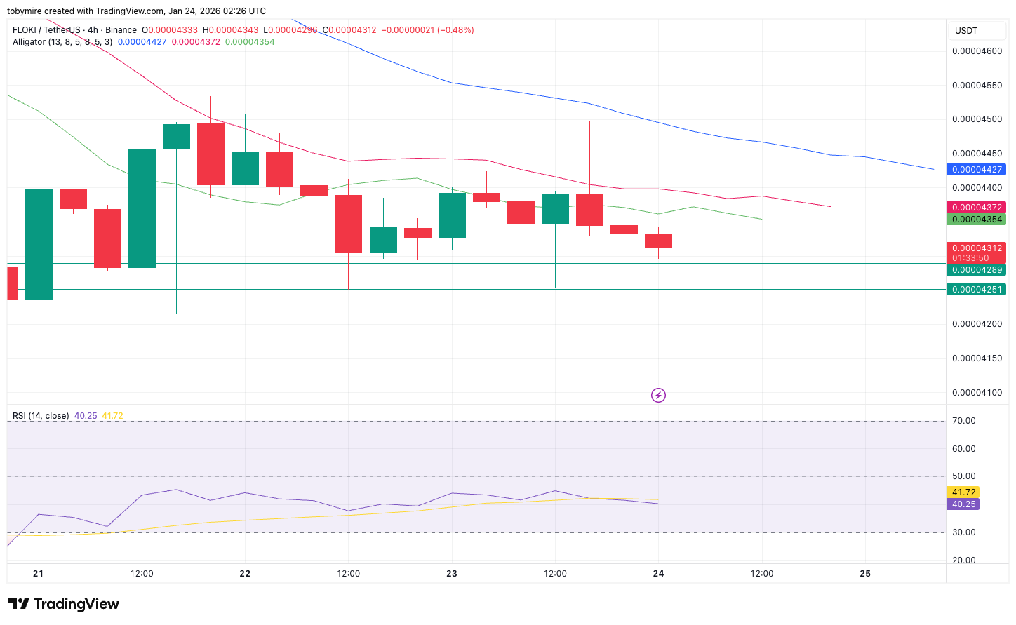 В четырёхчасовом таймфрейме Cardano остаётся в медвежьей структуре, определяемой более низкими максимумами и ограниченной силой отскока. Цена остаётся ниже облака Ичимоку и Кидзюн-сэна, что усиливает нисходящий уклон.
