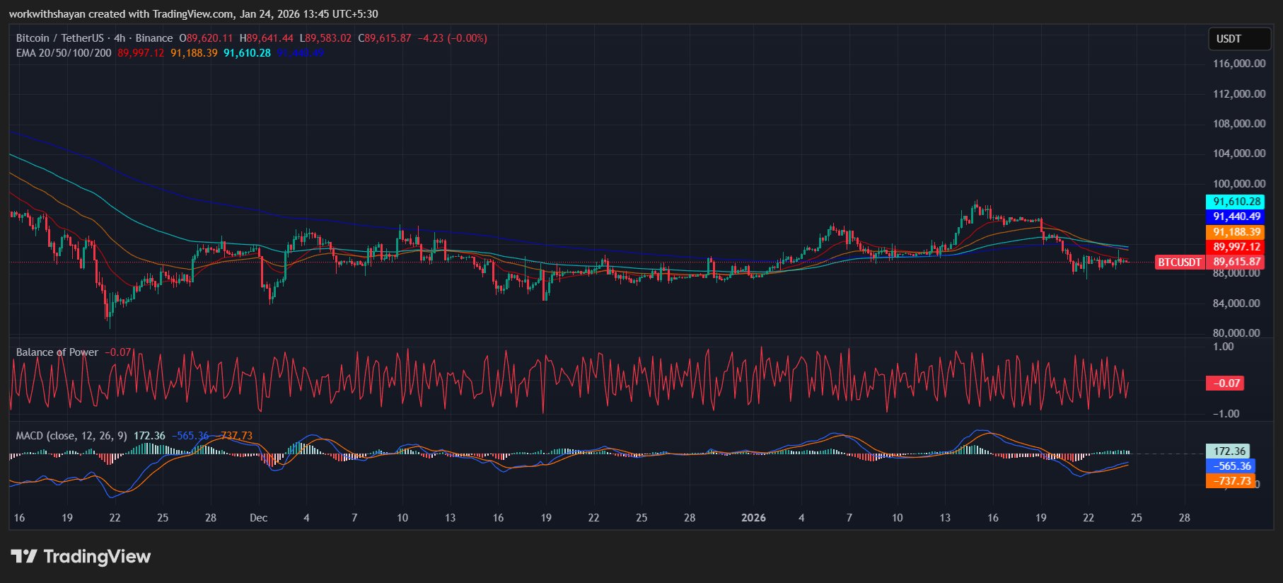 Тренд остаётся медвежьим, в то время как цена торгуется ниже кластера EMA, а спрос на ETF остаётся отсутствующим.