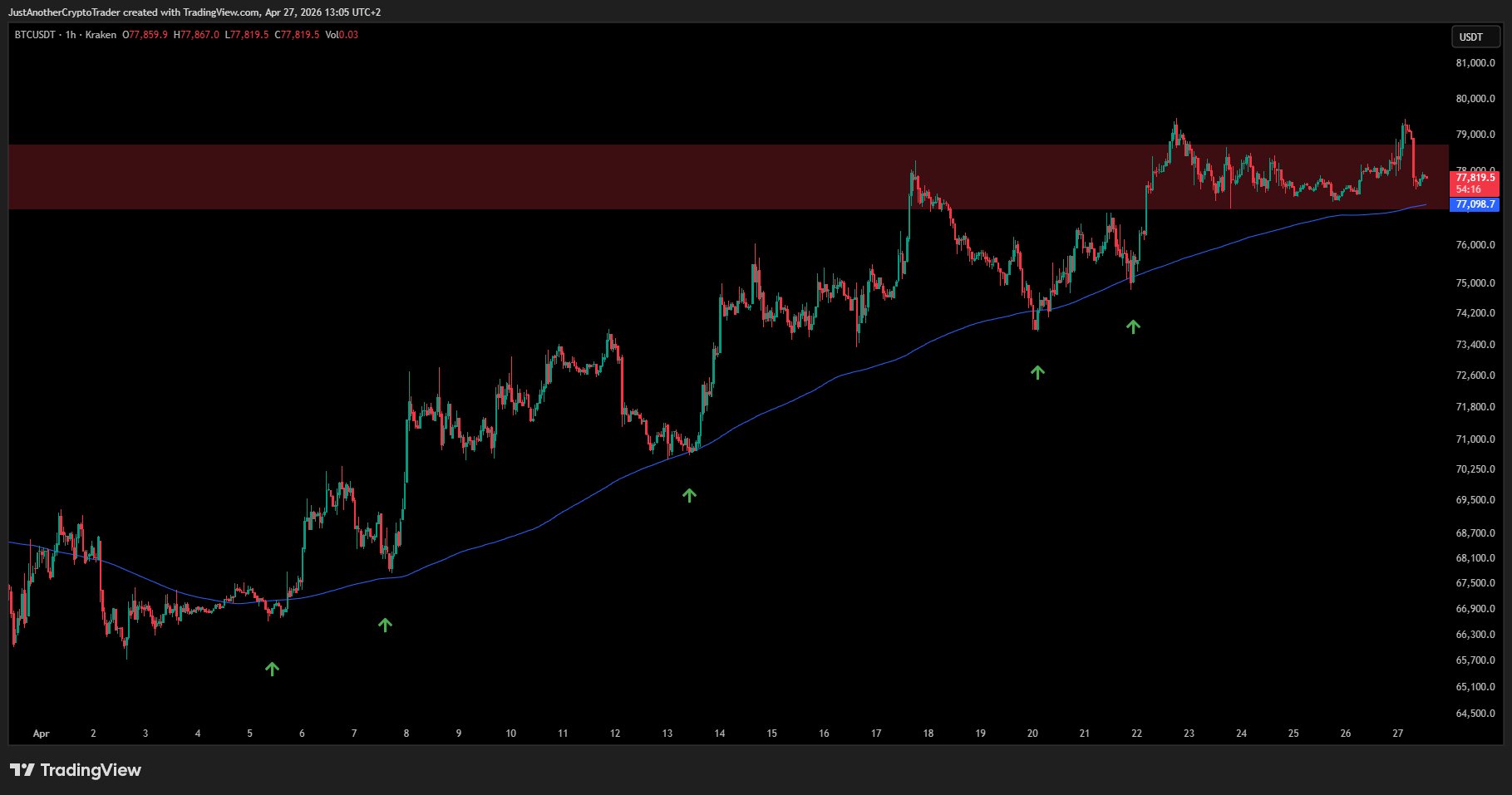 Трейдер Maartun указал на неизбежность пробоя $79 000 «в ближайшее время», несмотря на неудачу в начале недели. Эксперт сослался на стабильность 200-дневной скользящей средней.