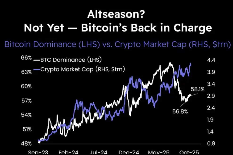 «За последние два месяца доминирование биткоина временно снизилось, поскольку ETH и отдельные альткоины показали лучшие результаты, но сейчас эта тенденция меняется на противоположную. Это свидетельствует о том, что биткоин снова возвращает себе лидерство в этом цикле», — написала компания в среду на X.