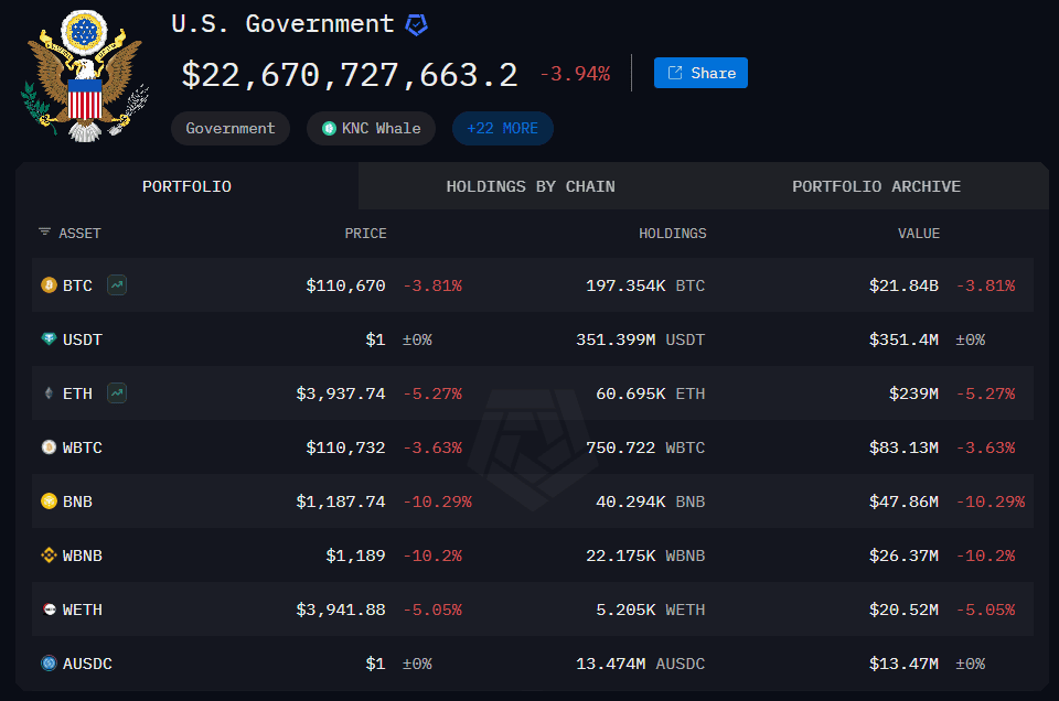 На момент написания на этом адресе хранятся криптоактивы на общую сумму в $22,67 млрд, включая 197 354 BTC. Это первый крупный перевод биткоинов за семь месяцев.
