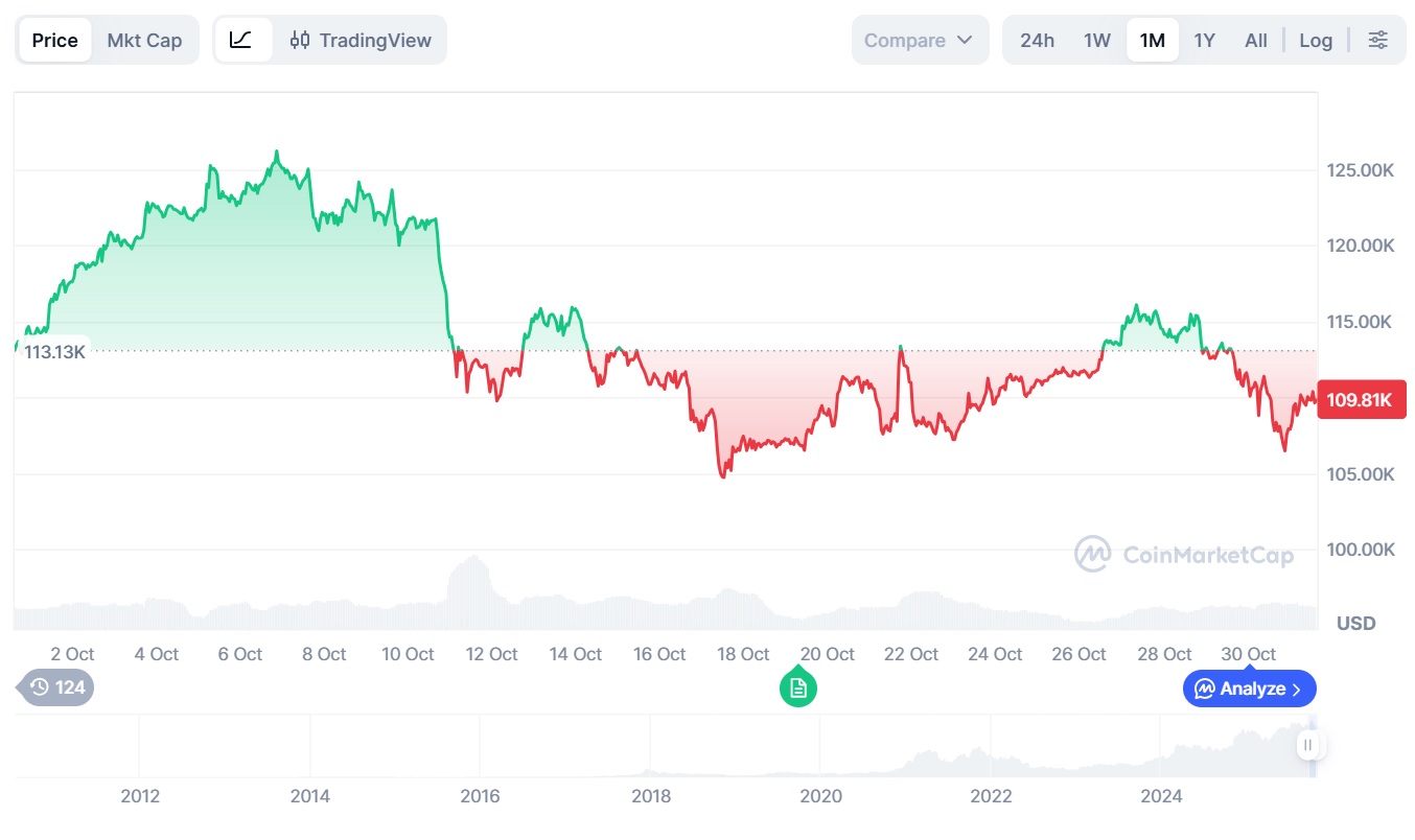Несмотря на юбилей, октябрь 2025 года стал для биткоина первым убыточным месяцем за семь лет. По данным CoinGlass, курс упал на 3,5%, что прервало серию позитивных октябрей — исторически второго по прибыльности месяца года, когда средняя доходность достигала 19,9%.