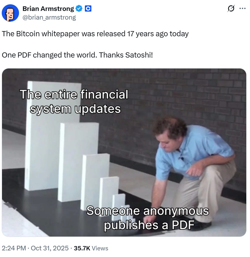 31 октября 2025 года криптосообщество отметило 17-летие публикации white paper биткоина (BTC) — документа, который навсегда изменил мировую финансовую систему.