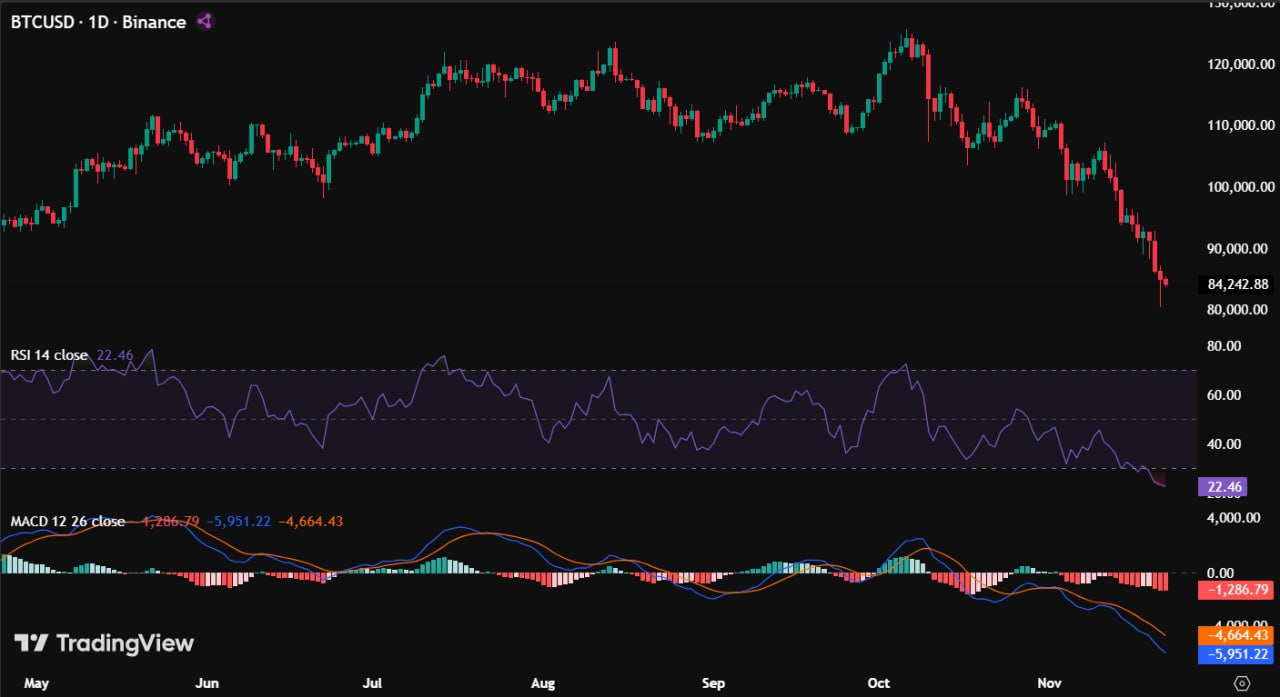 Аналитик Кас Аббе (Cas Abbé) отмечает, что дневной RSI биткоина находится в зоне перепроданности уже три дня подряд. Дневной MACD уже достиг самого низкого уровня, что показывает достижение экстремума в продажах. Аналитик не удивится, если увидит отскок, чтобы поймать в ловушку запоздавших продавцов.