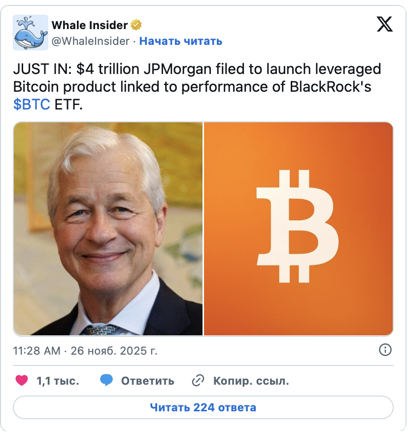 Клиент не получает в собственность IBIT или цифровую валюту. JPMorgan фактически заключает пари на движение цены: