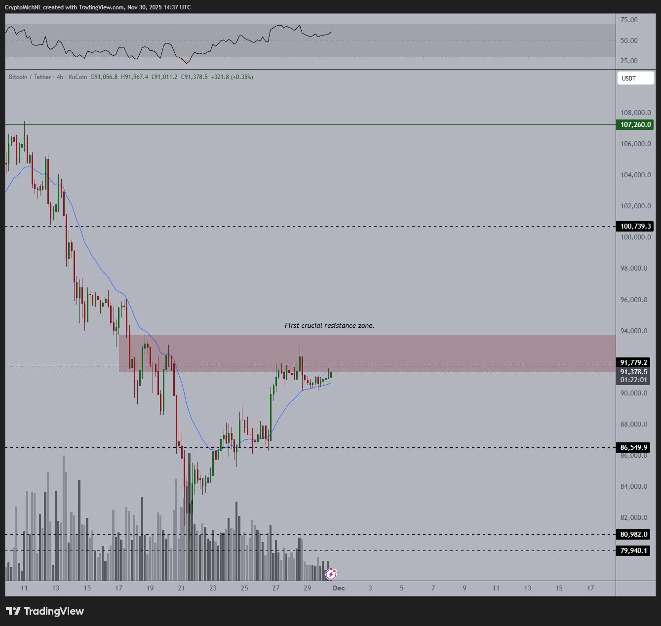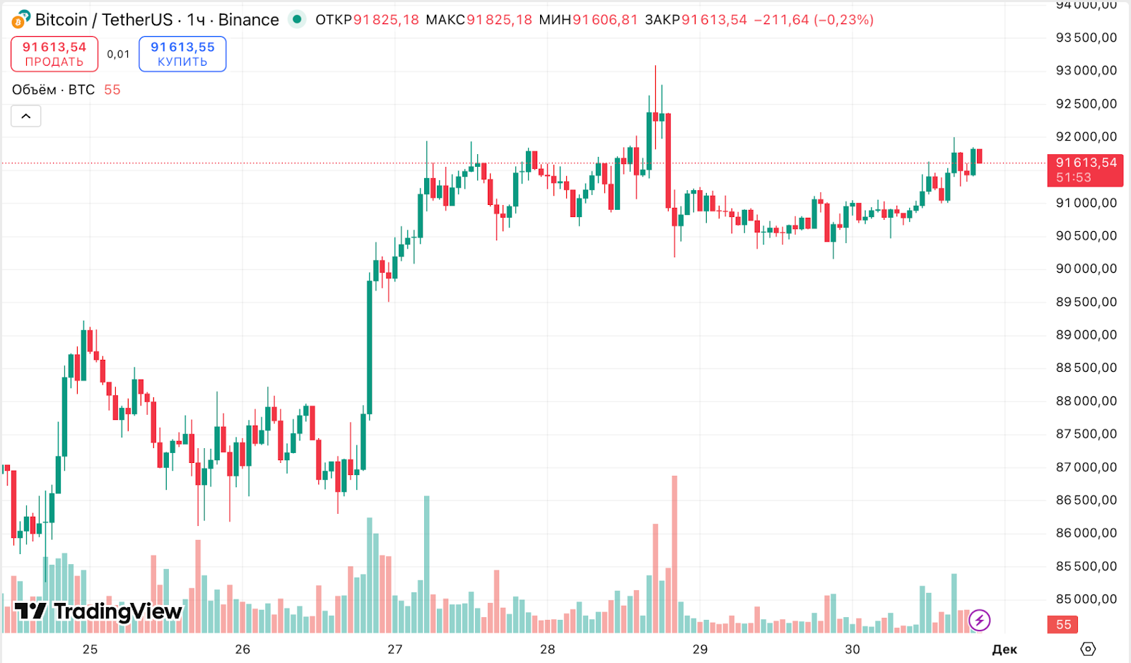 На момент написания цена биткоина (BTC) составляет около $91 700, прибавив за последние сутки 0,9%. Аналитик Михаэль ван де Поппе спрогнозировал рост монеты в ближайшие недели.