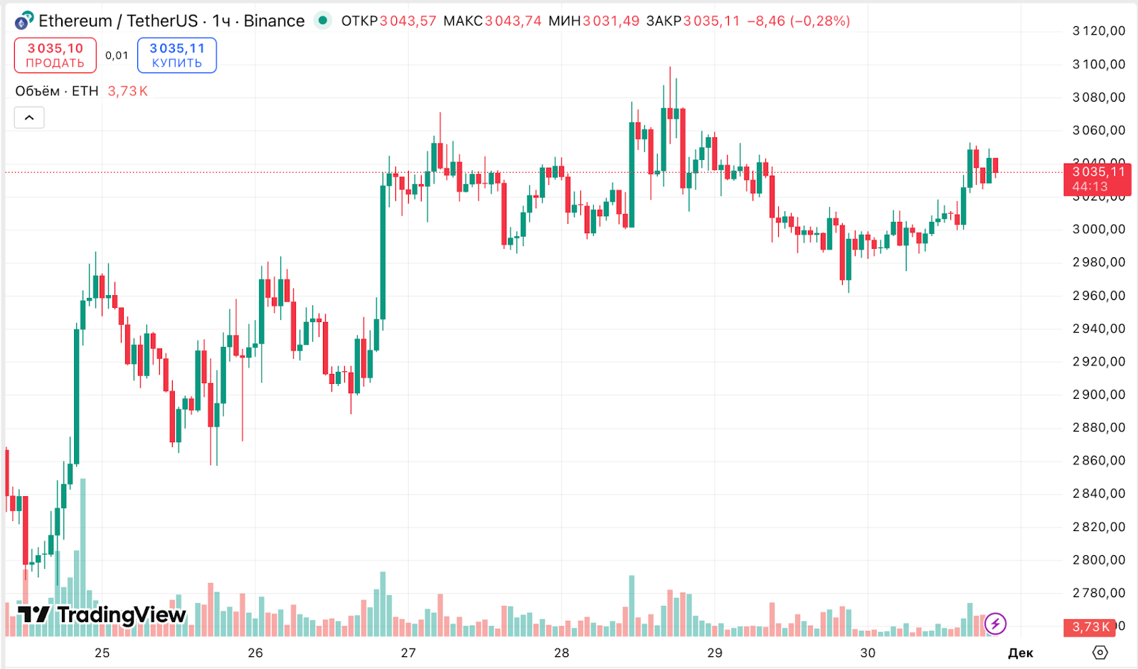 За последние сутки капитализация сектора криптовалют увеличилась на 0,8%. Цена Ethereum (ETH) остается на уровне $3000 — курс ведущего альткоина увеличился на 1,2% за прошедшие 24 часа.