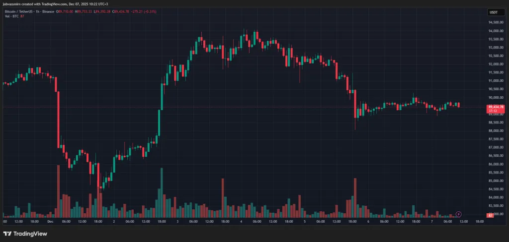 На момент написания первая криптовалюта торгуется по $89 400, за сутки почти не изменившись в цене.