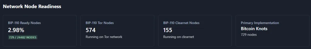 По состоянию на 25 января 729 из 24482 (~3%) узлов в блокчейне биткоина «сигнализировали» о поддержке софтфорка в рамках BIP-110. Инициатива создана для борьбы со спамом.