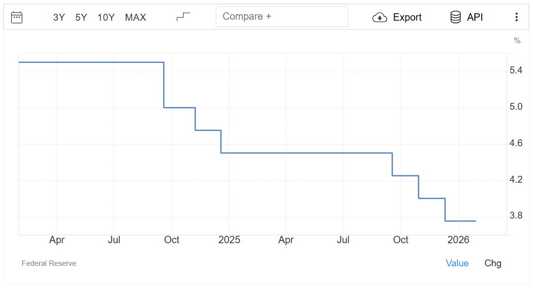 До этого, в начале декабря 2025 года ФРС снизила показатель на 0,25%. С сентября 2024 года, когда регулятор начал смягчать политику, процентная ставка была сокращена на 1,75%.
