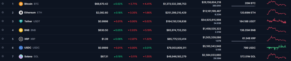 Падение рынка затронуло и другие крупные активы. Ethereum снизился на 3,3%, XRP — на 2,9%, BNB — на 1,2%, а Solana — на 3,1%. Общая капитализация рынка сократилась на 2,47%, по данным CoinMarketCap.