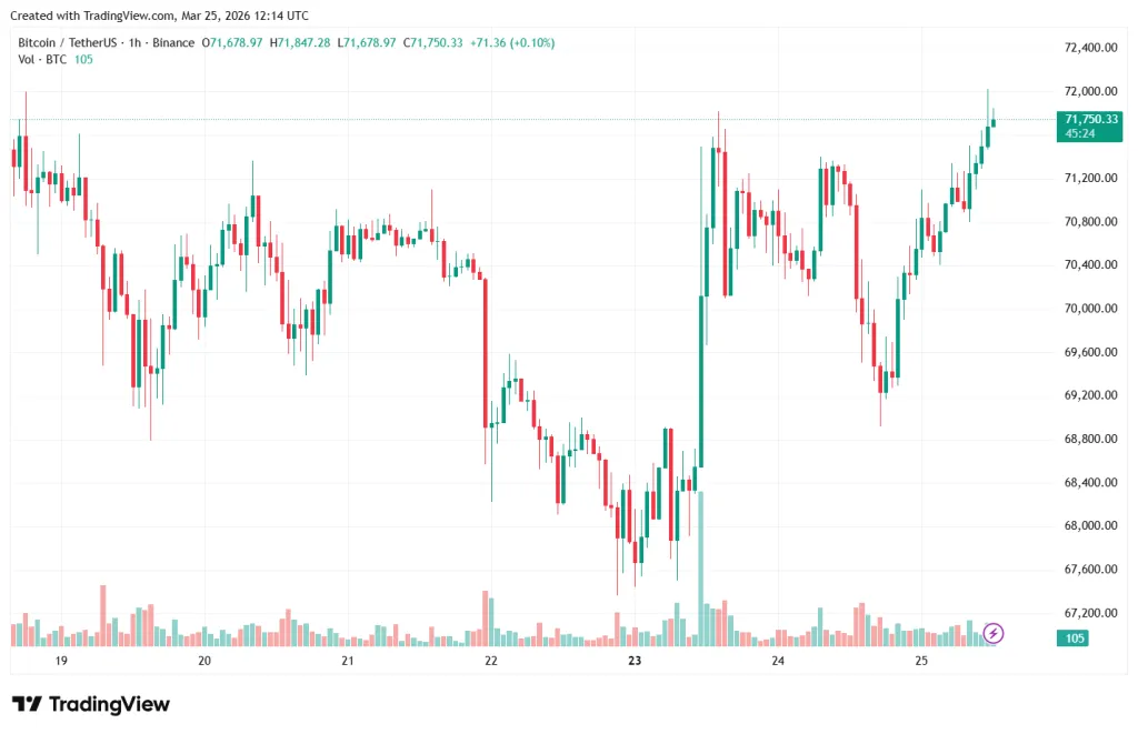 Курс первой криптовалюты достиг отметки $72 000. Рост происходит на фоне приближающейся крупной экспирации опционов и сообщений о возможной деэскалации на Ближнем Востоке.