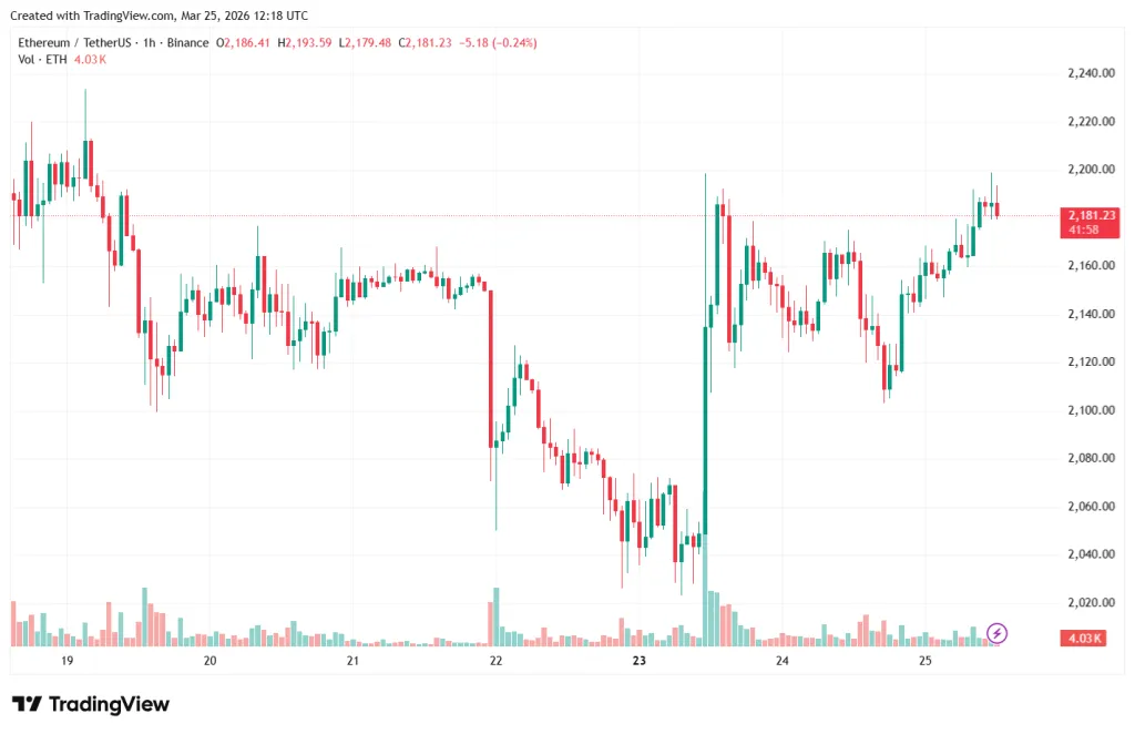 На момент написания Ethereum торгуется по $2181, прибавив 1,1% за сутки.