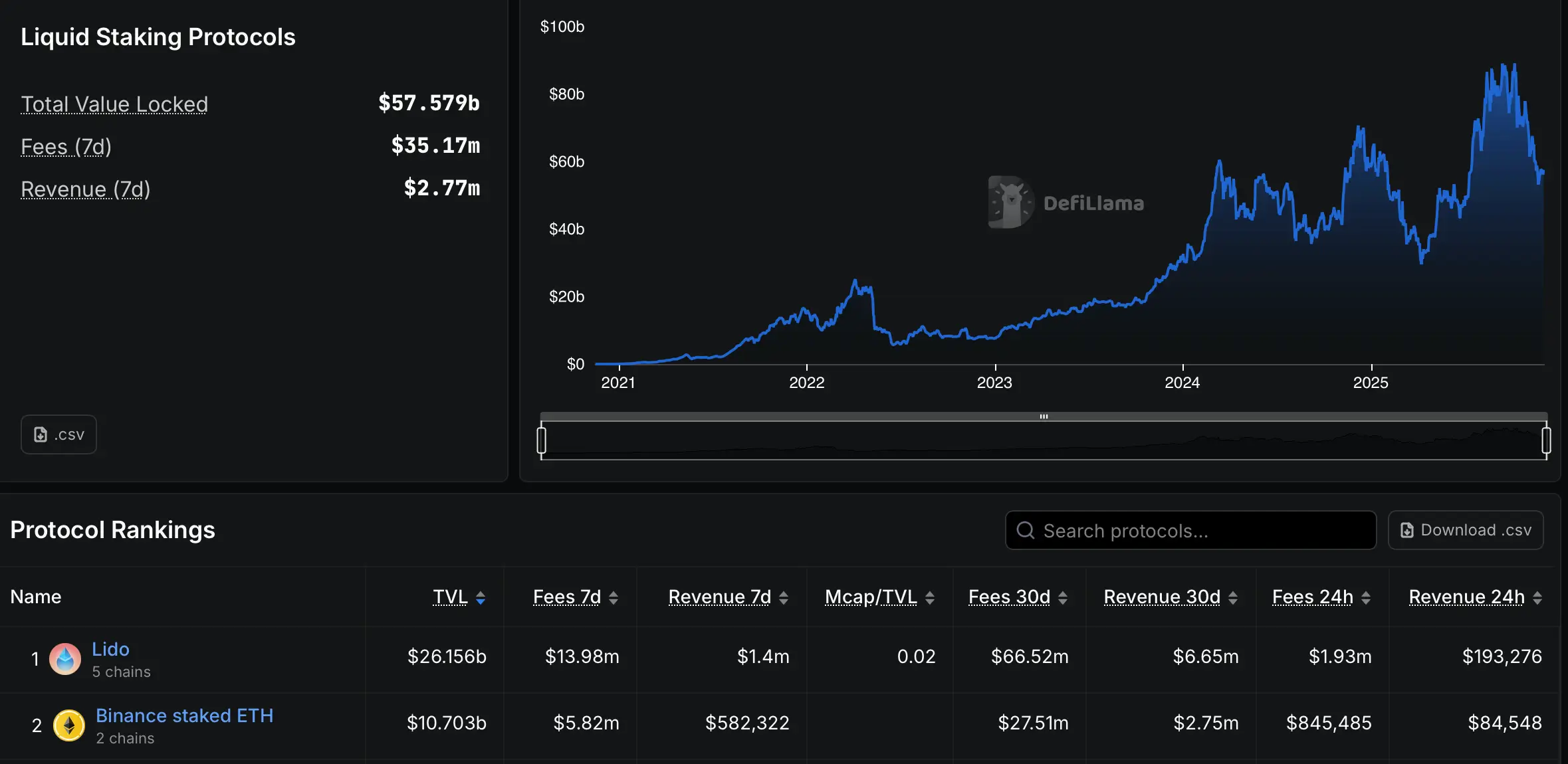 Протоколы ликвидного стекинга и рыночная капитализация. Источник: DefiLlama