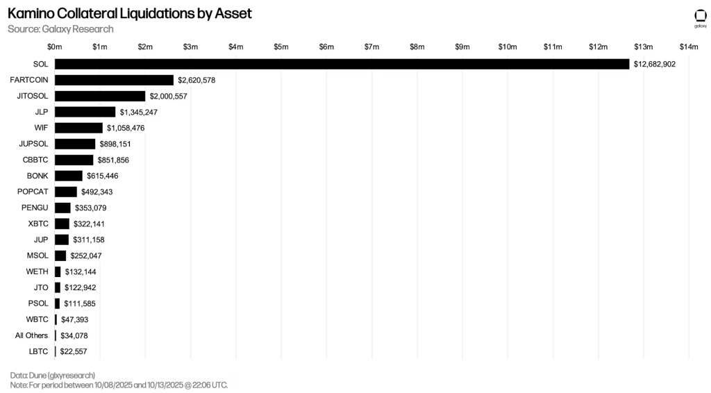 Платформа Kamino столкнулась с ликвидациями. Среди крупнейших — $12,7 млн в WSOL и $2,6 млн в FARTCOIN.