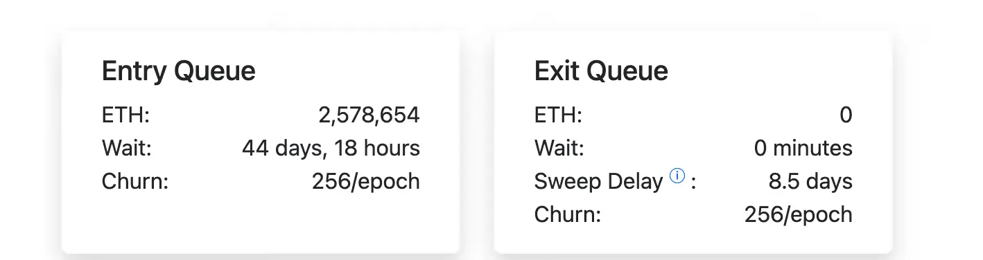 На фоне рекорда очередь вывода валидаторов в сети Ethereum обнулилась — теперь участники стекинга могут выводить ETH практически мгновенно. При этом очередь на вход остается длинной.
