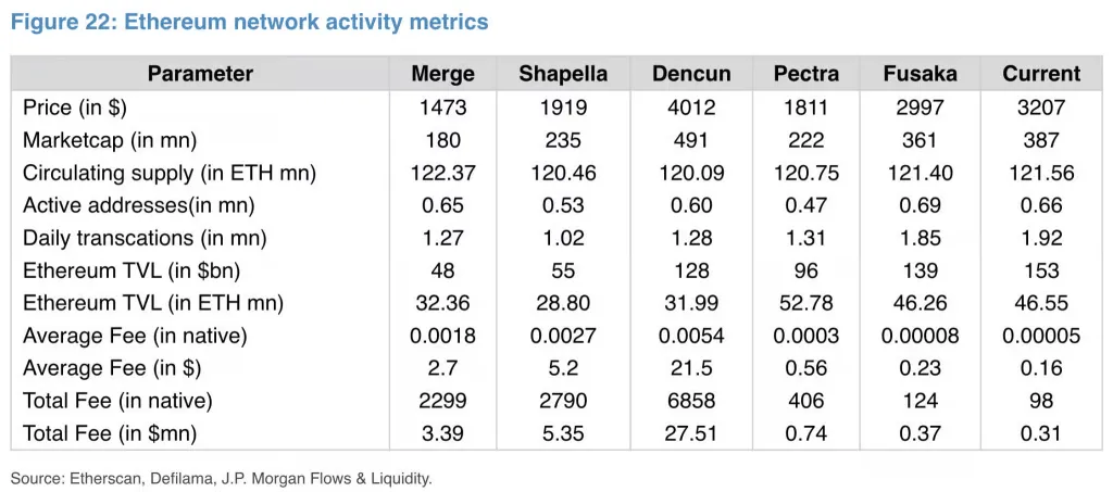 Недавнее обновление Fusaka привело к увеличению активности в сети Ethereum, однако в JPMorgan поставили под сомнения долгосрочные перспективы блокчейна. Об этом пишет The Block со ссылкой на отчет банка.