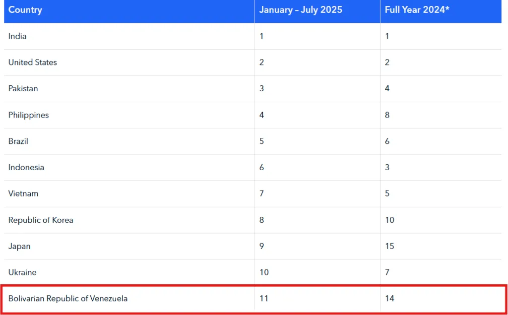 Венесуэла заняла 11 строчку в глобальном индексе принятия криптовалют. Рост интереса граждан к цифровым активам произошел на фоне усиления давления администрации президента США Дональда Трампа на местного лидера Николаса Мадуро.