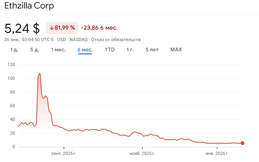 Покупка реальных активов происходит на фоне финансовых трудностей у ETHZilla. С августа акции компании обвалились на 97%.