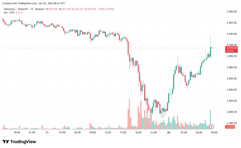 Транш на биржу совпал с коррекцией рынка. На момент написания Ethereum торгуется в районе $2915 (-0,6% за сутки).