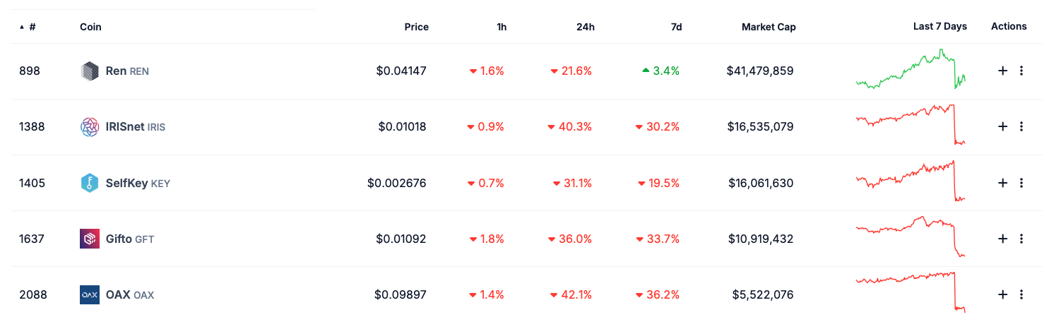 К примеру, сумма сделок с REN упала с 34 миллионов долларов в марте до почти 6 миллионов в начале ноября. Аналогичный показатель для OAX снизился с пика в 101 миллион долларов в марте до 468 тысяч долларов в октябре.