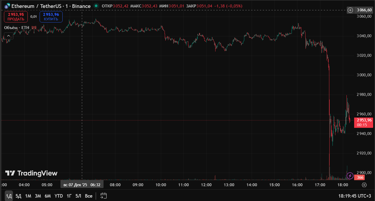 Тед Пиллоуз предположил, что эфир, вероятно, еще сильнее откатится от уровня $3000 на открытии торгов 8 декабря. Однако после этого движения возможен бычий разворот.