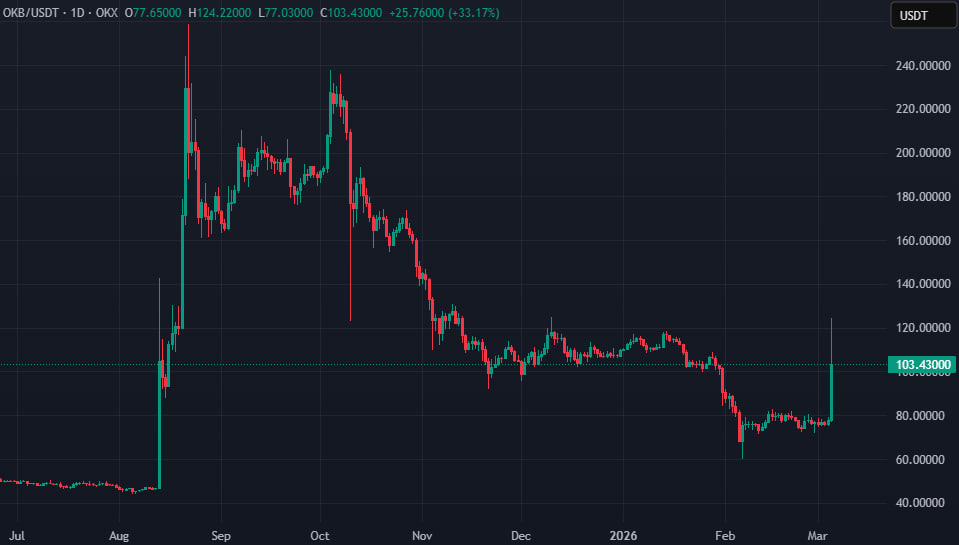 - На фоне этого стоимость токена $OKB выросла более чем на 50%.