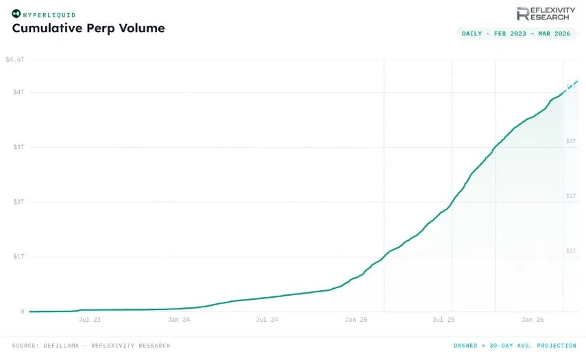 Кумулятивный объем торгов бессрочными фьючерсами на платформе Hyperliquid превысил $4 трлн. На достижение этой отметки проекту потребовалось три года.