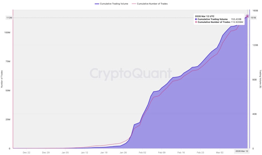 Объем торгов бессрочными TradFi-фьючерсами на криптобирже Binance превысил $153 млрд менее чем за два месяца после запуска этих инструментов в начале января. Общее количество сделок за этот период достигло 114 млн. Об этом Incrypted сообщили представители биржи со ссылкой на данные CryptoQuant.