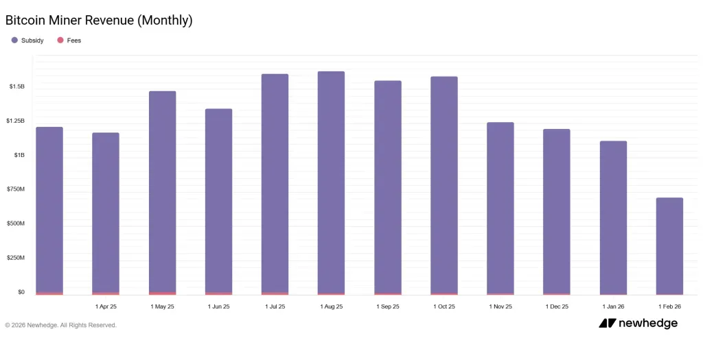 Доходы майнеров заметно снижаются с октября 2025 года. Если тогда показатель составлял $1,59 млрд, то в январе опустился к $1,12 млрд.