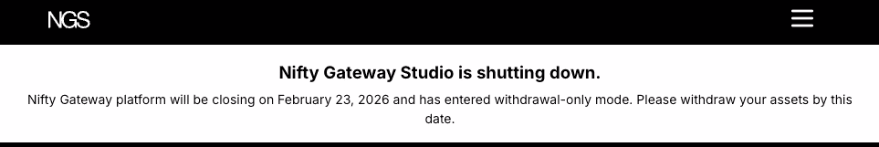 Nifty Gateway, торговая платформа невзаимозаменяемых токенов (NFT), которая когда-то была центральной в буме цифрового искусства 2021 года, закроется 23 февраля 2026 года.