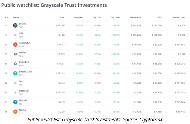 Хотя официально ралли альткоинов еще не началось, но некоторые из них уже выросли на трехзначные проценты, что принесло Grayscale рост стоимости криптовалютного портфеля на 85%. Далее мы приводим структуру инвестиций гиганта криптоиндустрии.
