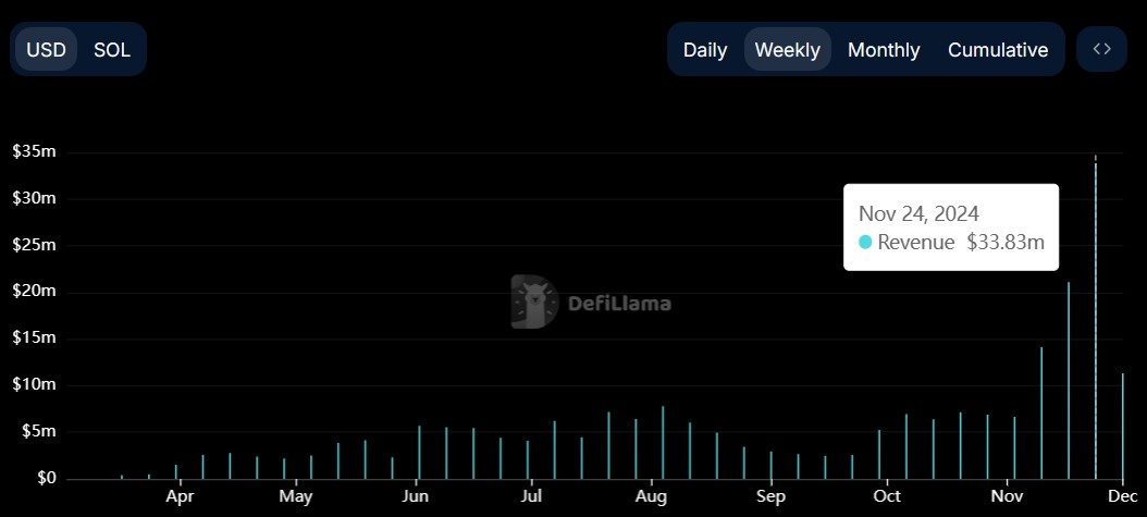 Подводя итоги последней недели ноября, DefiLlama выснила, что доход платформы снизился на 66%, и составил всего 11,31 млн долларов. Данные предыдущих недель, напротив, показывали тенденцию к стабильному увеличению прибыли.