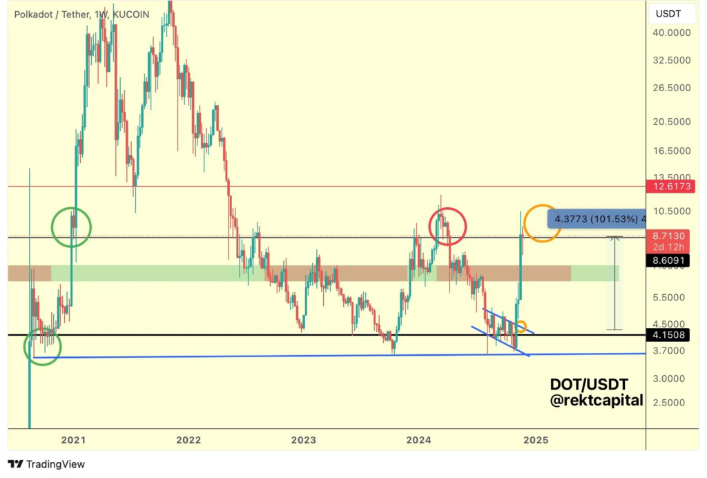 Презентация этих новых возможностей подстегнула интерес сообщества к токену, и он впервые увидел недельное закрытие выше уровня сопротивления в $8.60.