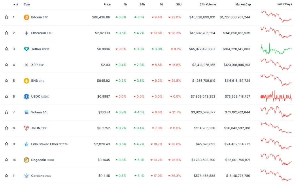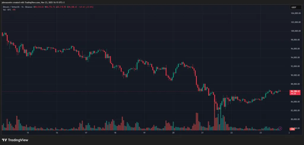К вечеру воскресенья цифровое золото восстановилось до $86 500. Недельное падение составило около 10%.
