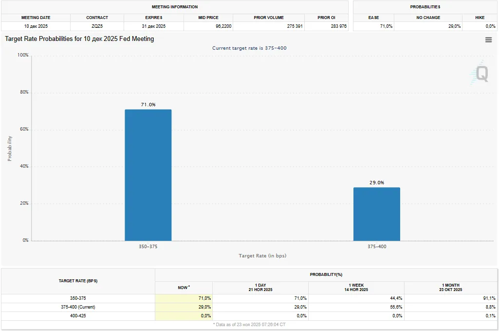 Инвесторы оценивают шансы на продолжение смягчающей политики в 71%. Для сравнения, в начале месяца этот показатель составлял 98%.