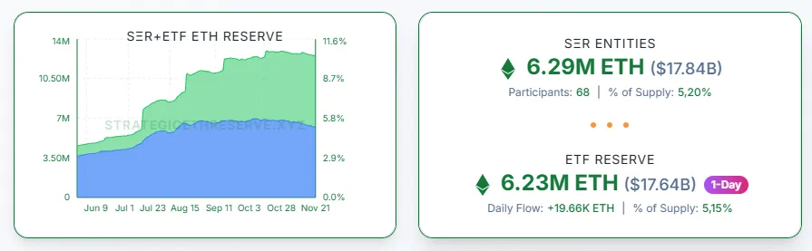 Сейчас девять финансовых гигантов, включая BlackRock, управляют активами на $17 млрд через биржевые фонды. Еще столько же удерживают на своих балансах несколько десятков казначейских компаний. В общей сложности эти участники рынка аккумулировали 10,35% от предложения монеты.